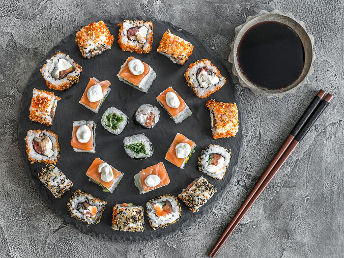 Запеченный Генко c угрём, лососем и сыром