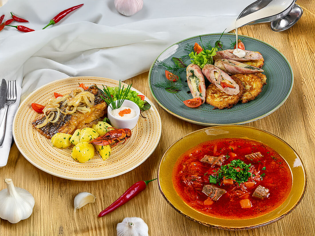 Драники Полтавские из кабачков со сливочно-рыбным муссом