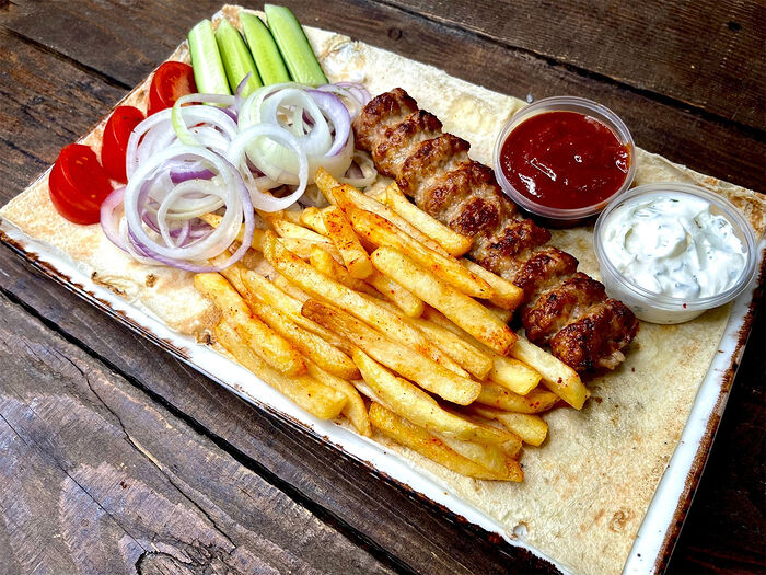Комбо №2 Шашлык из курицы, фри, овощи, соус, лаваш