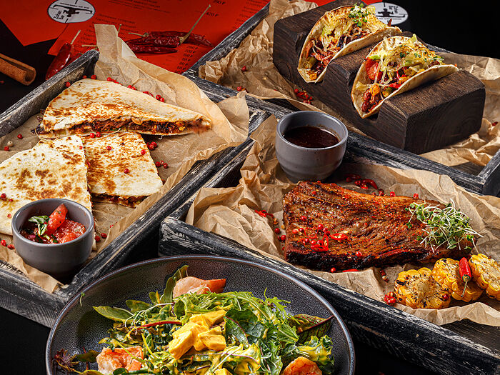 Кесадилья с пряной говядиной и начосс