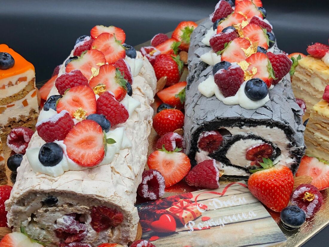 Меренговый фисташковый рулет со свежей малиной