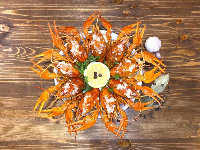 Раки Xl, варенные в бульоне из мёда и яблок