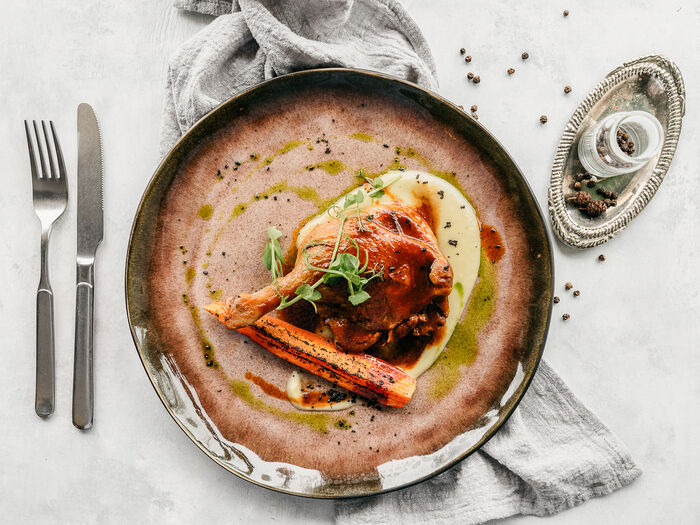 Индейка в кофейной панировке с пюре из печеных яблок