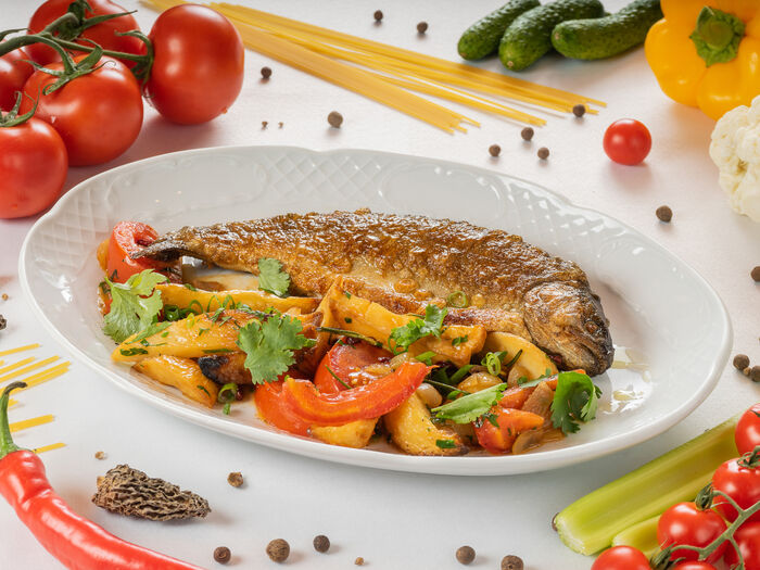 Паста пенне с лососем