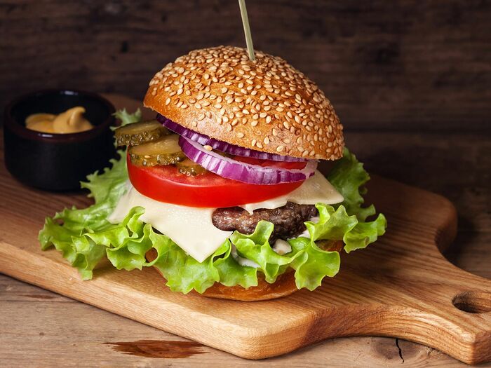 Бургер с говядиной и медово-горчичным соусом