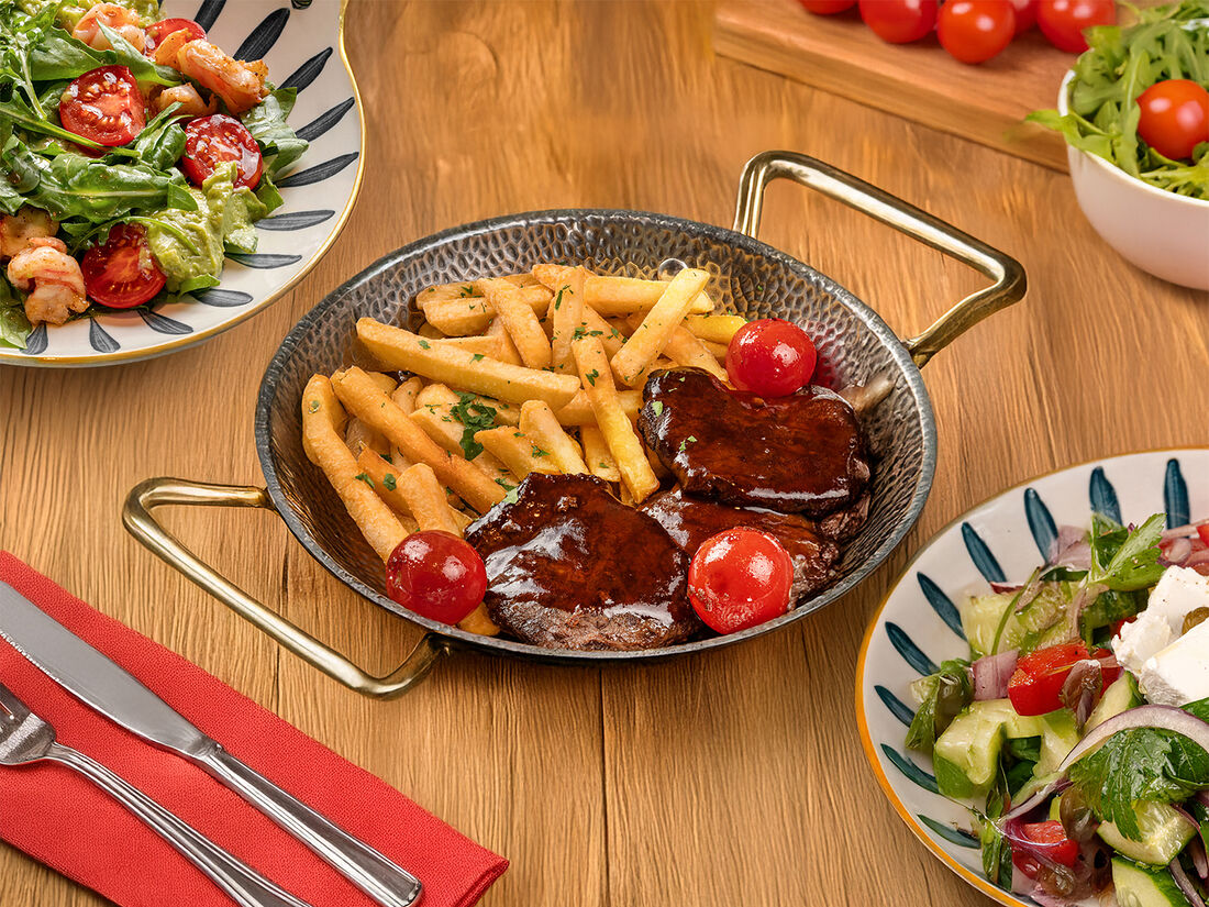 Говяжья вырезка с соусом BBQ и картофелем фри