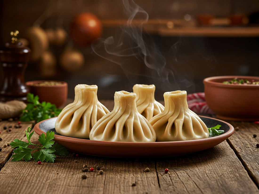 Хинкали в сливочно-горчичном соусе с домашним фаршем