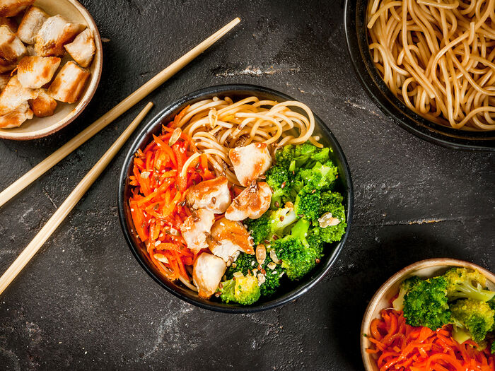 Лапша с овощами и курицей