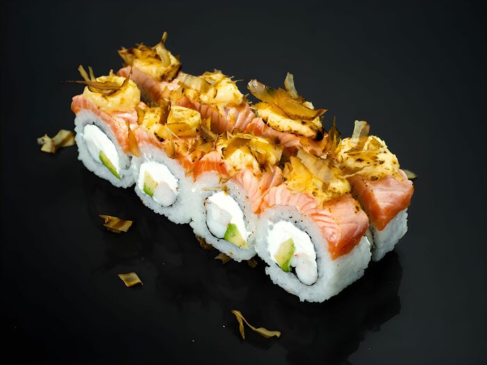 46. Малый ролл: white лосось, сыр, волокна снежного краба (6 шт.)