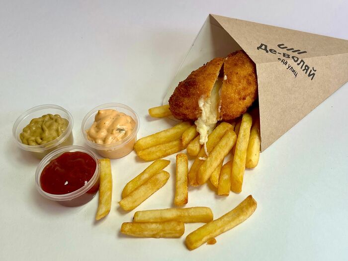 Котлета по-киевски с моцареллой и картофель фри