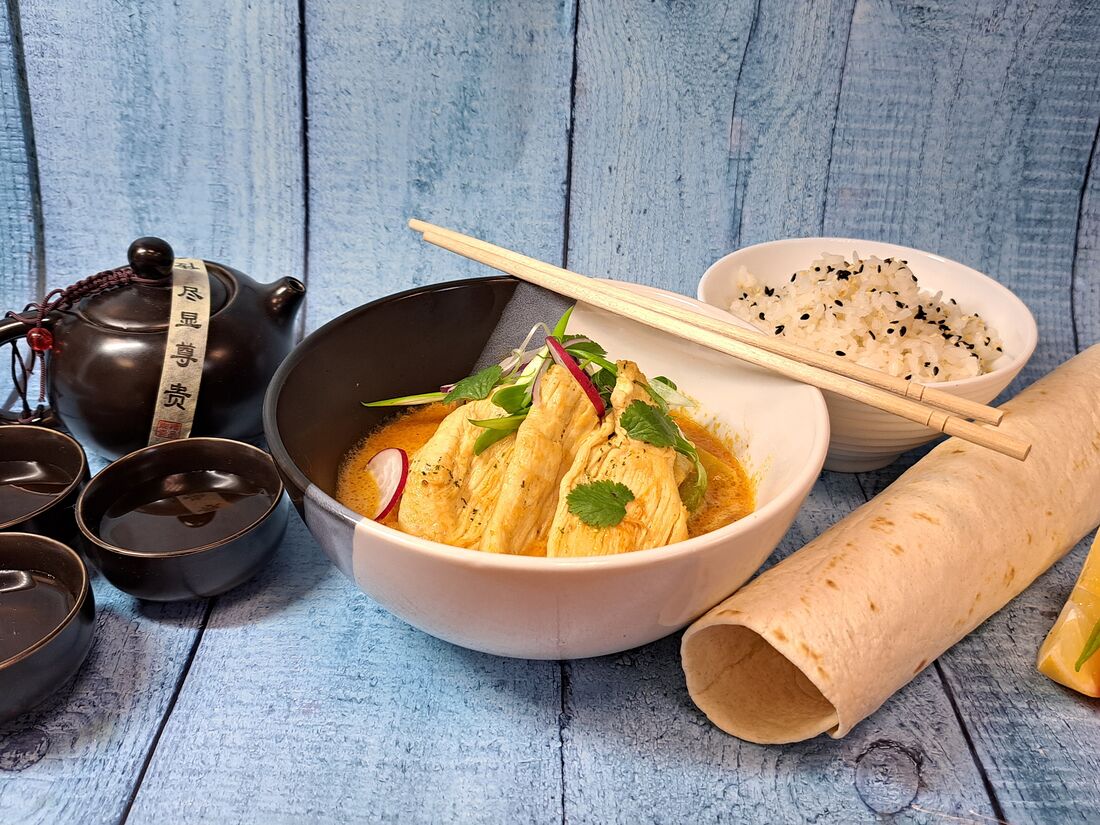 Карри с курицей, овощами и рисом
