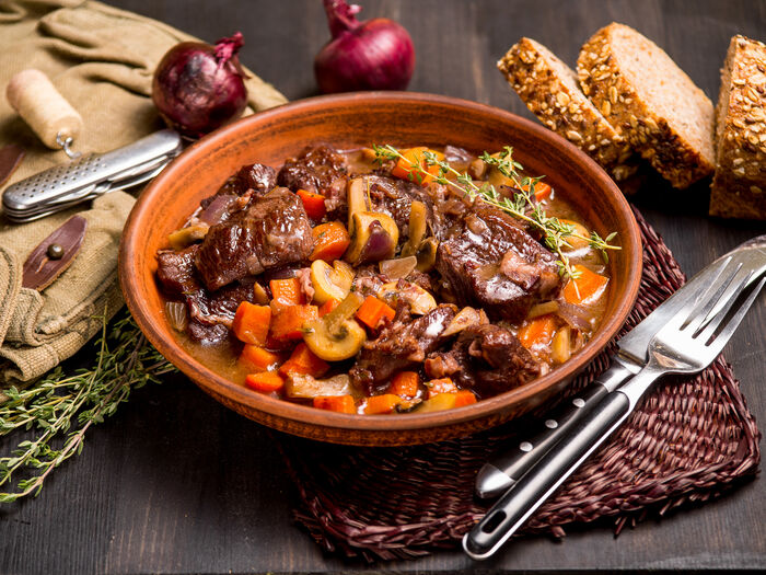 Бефстроганов с белыми грибами