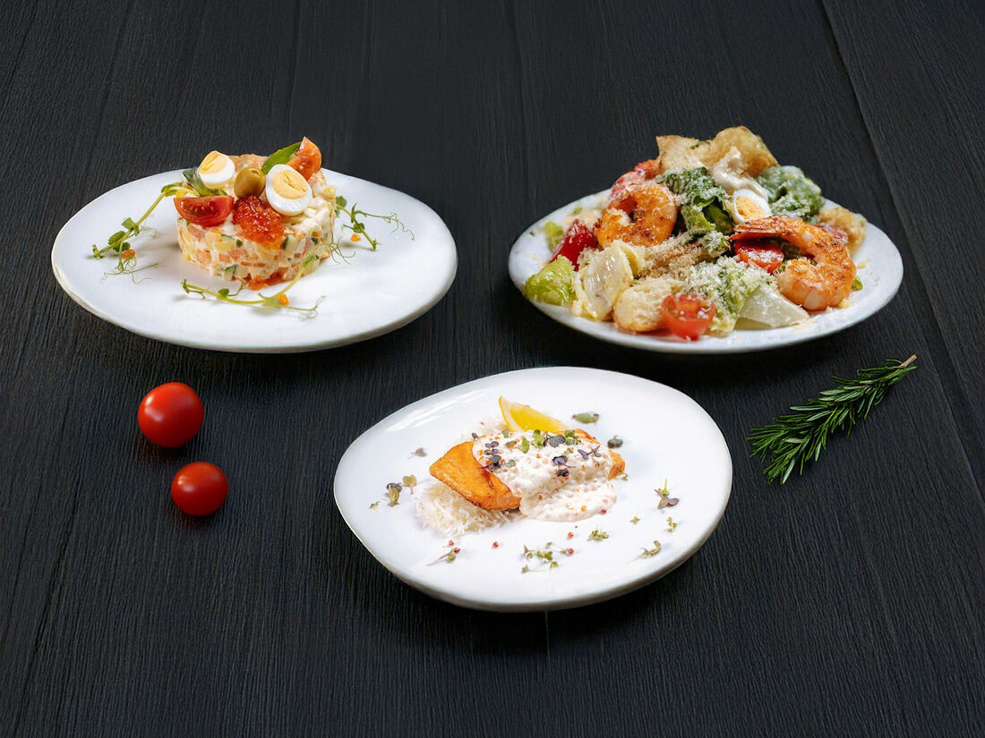 Салат Оливье по-Царски с семгой и красной икрой