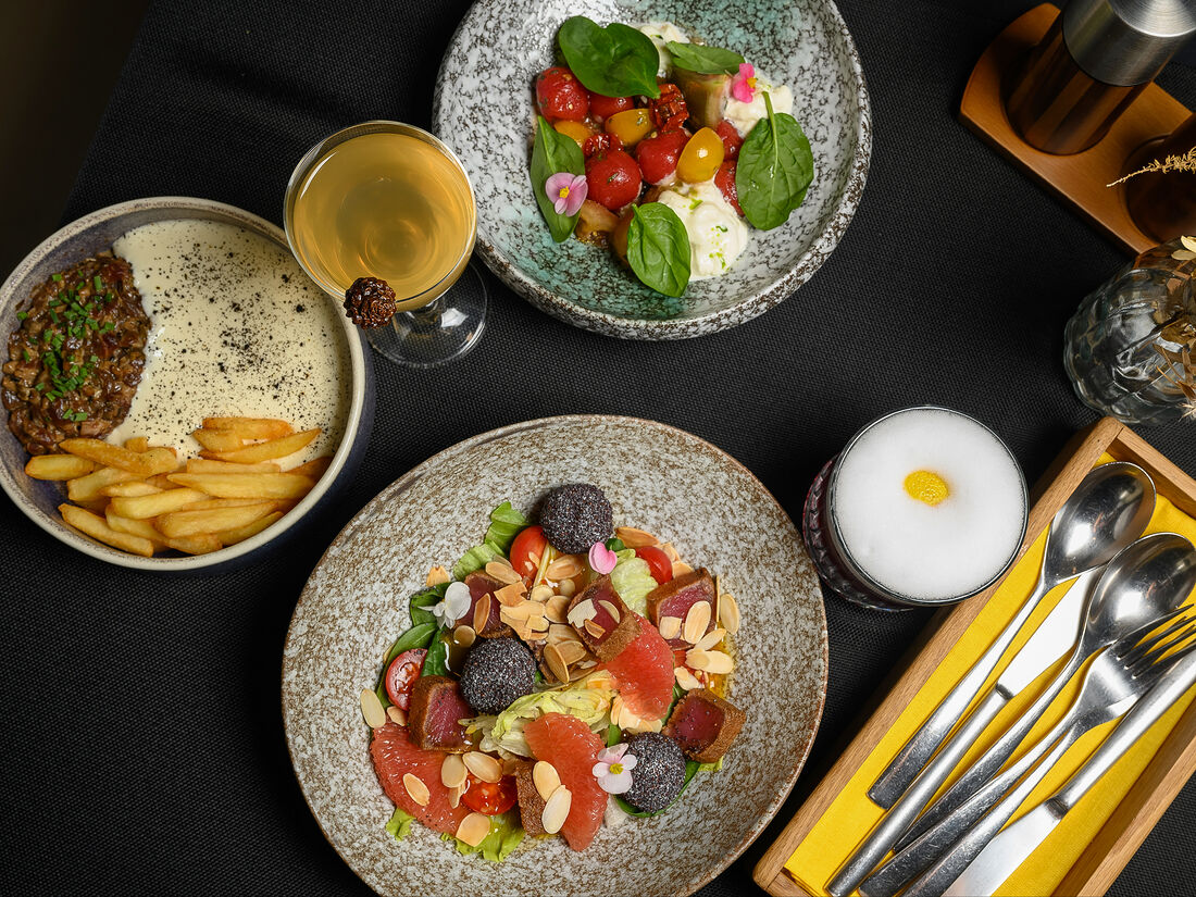 Тартар из телятины с картофелем фри