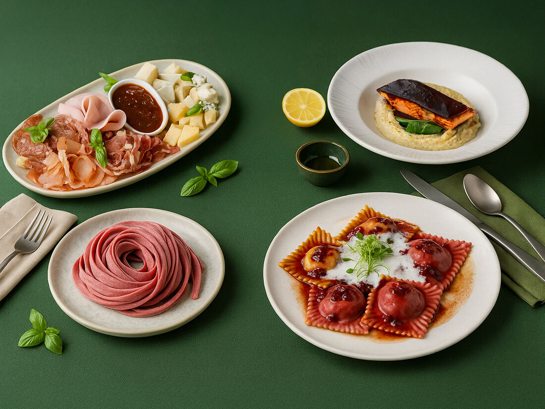 Мясные равиоли с брусничным соусом
