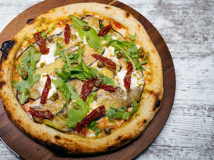Пицца с баклажаном и вяленым томатом