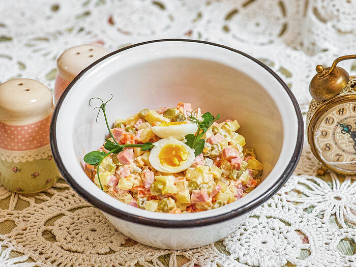 Оливье со скумбрией горячего копчения