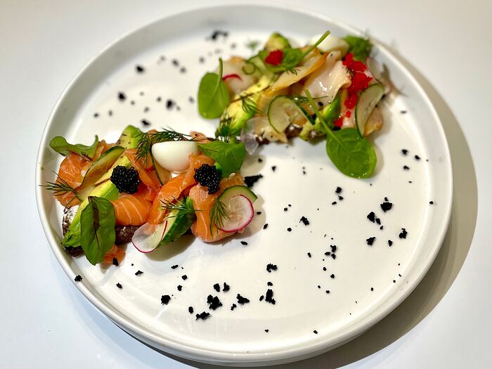 Брускетта лосось, творожный сыр
