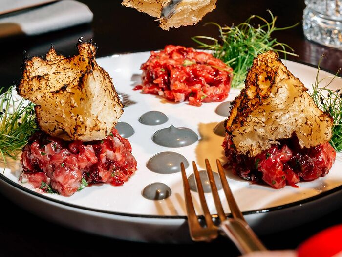 Тартар из бычка с белыми грибами