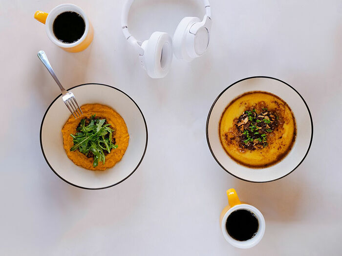 Сырный гритс со шпинатом и яйцом пашот