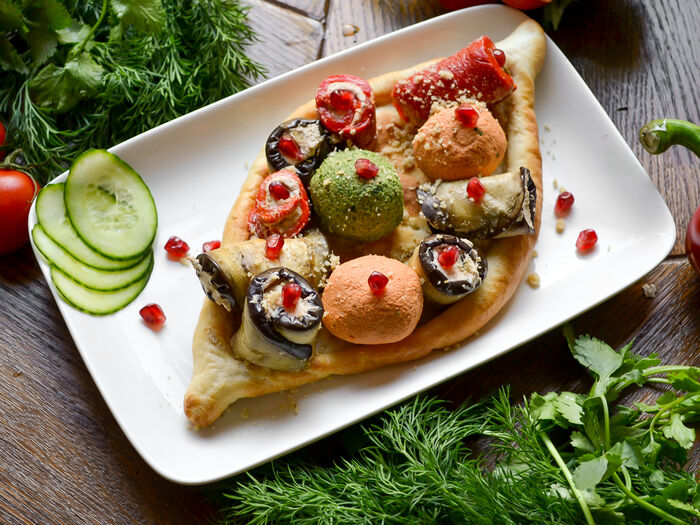 Салат овощной по-грузински с грецкими орехами