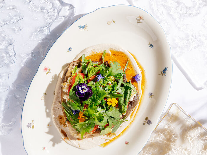 Пельмени с говядиной, сморчками и грибным бульоном