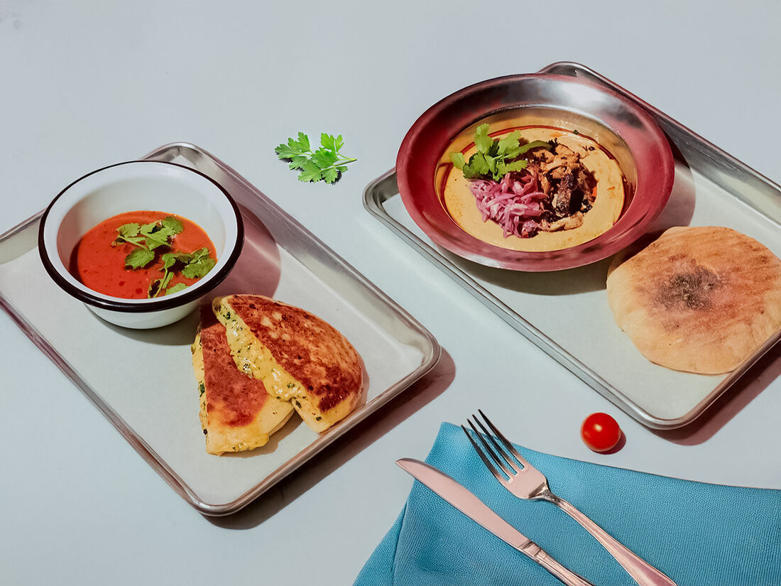 Томатный суп и пита гриль-чиз