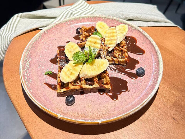 Вафля с шоколадной пастой и бананом