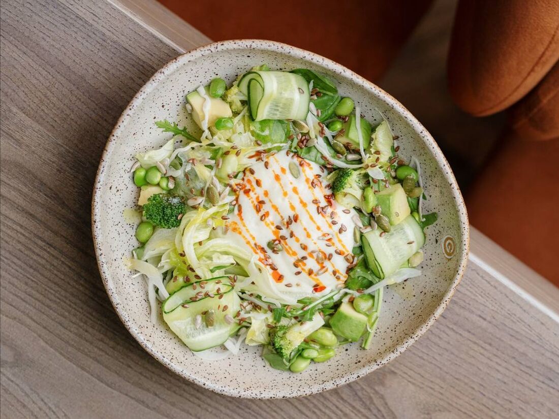 Зеленый салат с соусом юдзу