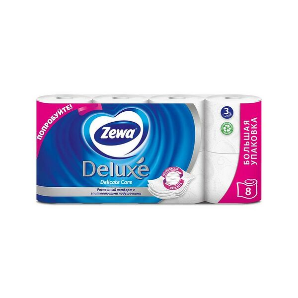 Доставка ""Zewa Deluxe" белая (pure white) 3-х слойная, 1*8 рулон" на дом из Гиппо в Витебске.