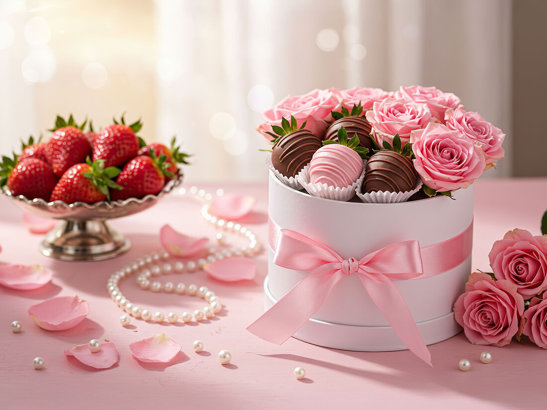 Набор макарон Капучино и клубники в шоколаде