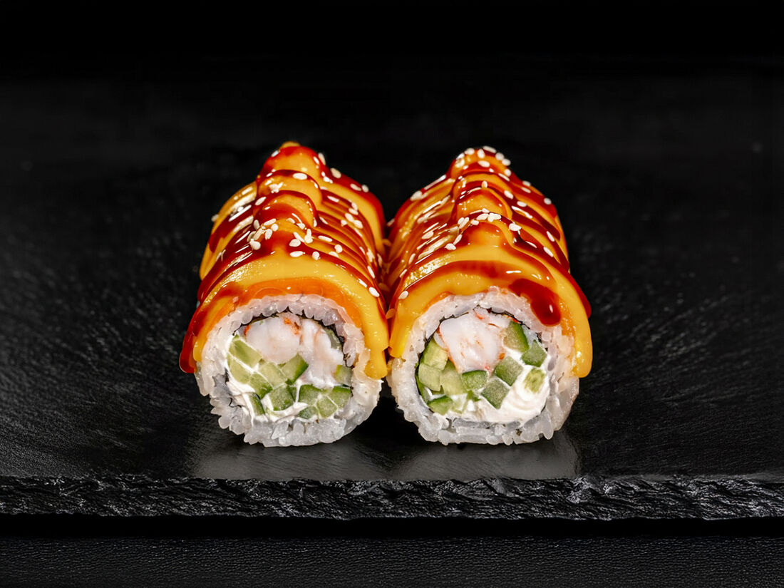 Запеченный ролл с креветкой и курицей