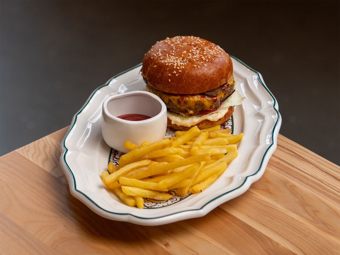Бургер шефа с говядиной и фри