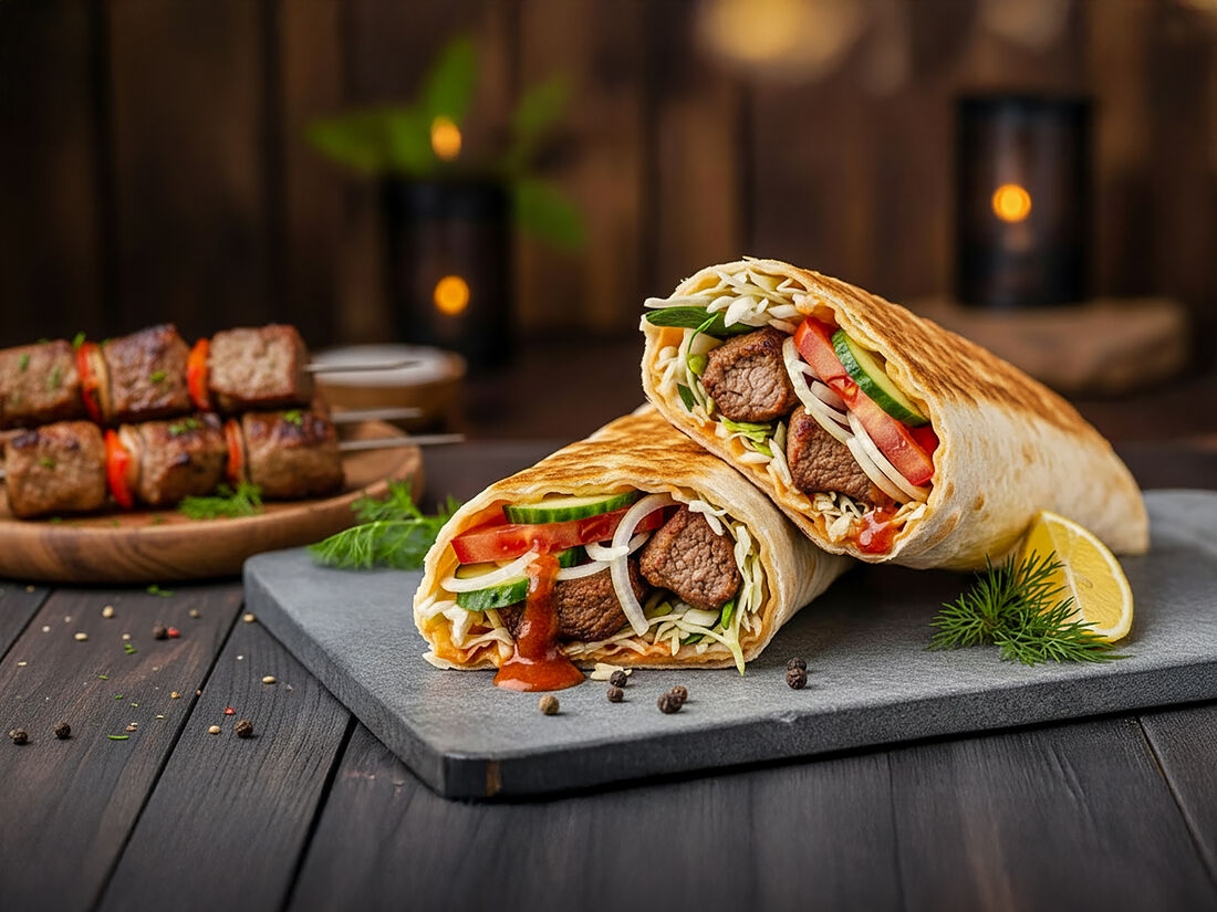 Шаурма с говядиной в лепёшке