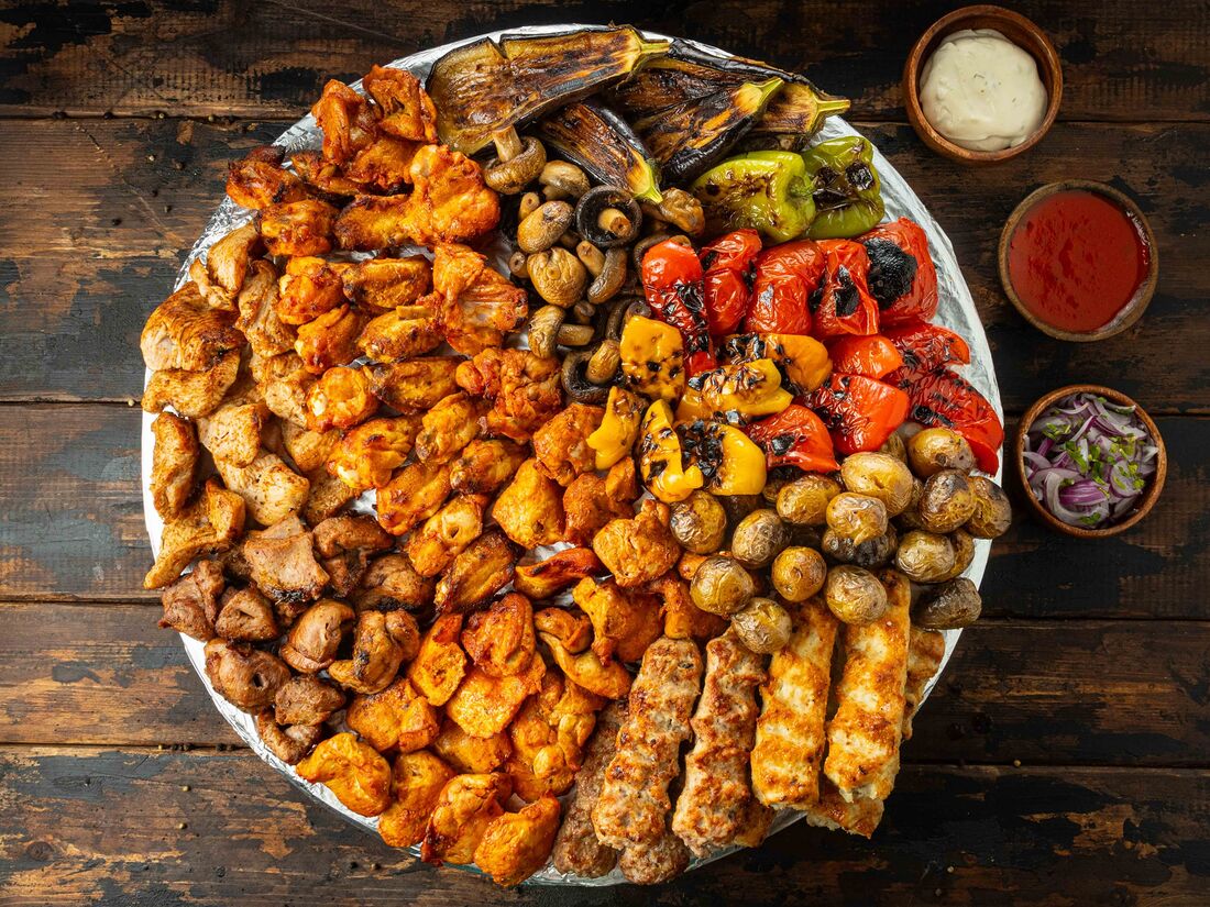 Ассорти в лепешке из люля-кебабов с овощами на 5-6 персон