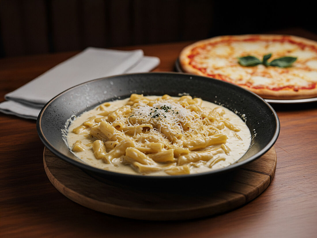 Паста Фетучини с курицей и грибами в сливочном соусе