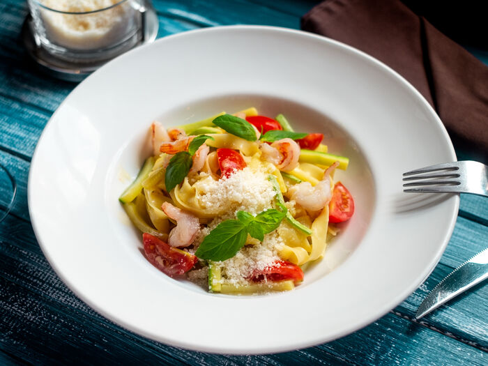 Паста с креветками и цукини