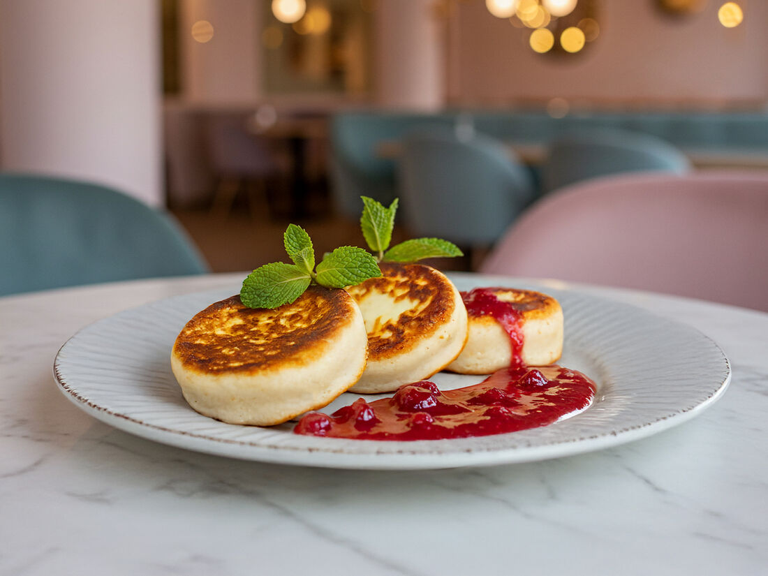Сырники с маком и вишневым конфи