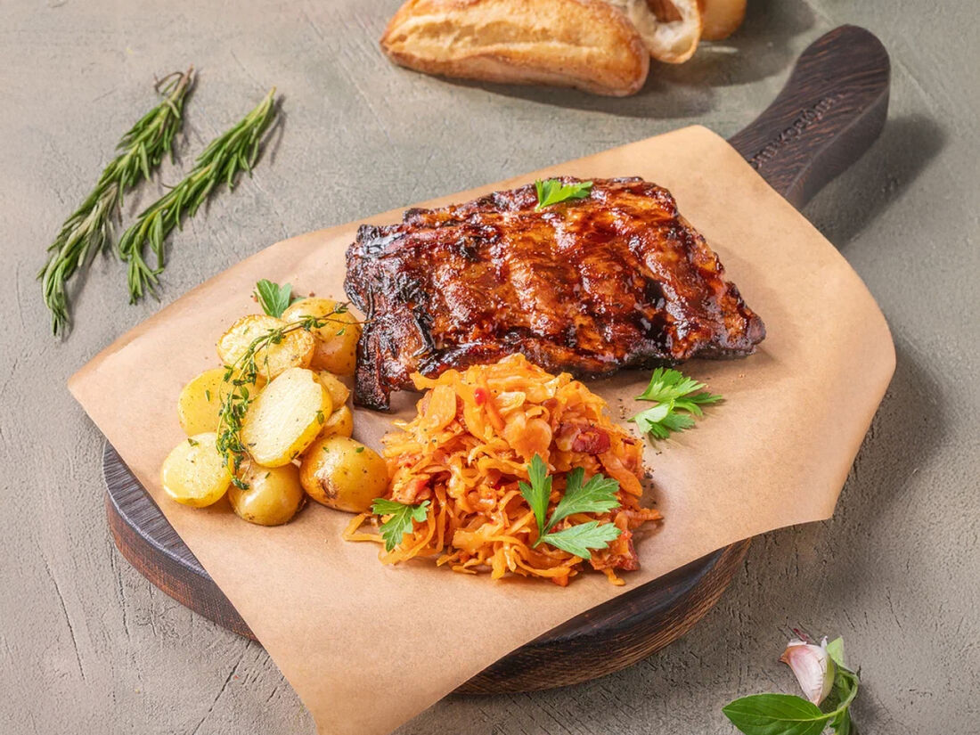 Стейк из говяжьего языка с немецким картофельным салатом