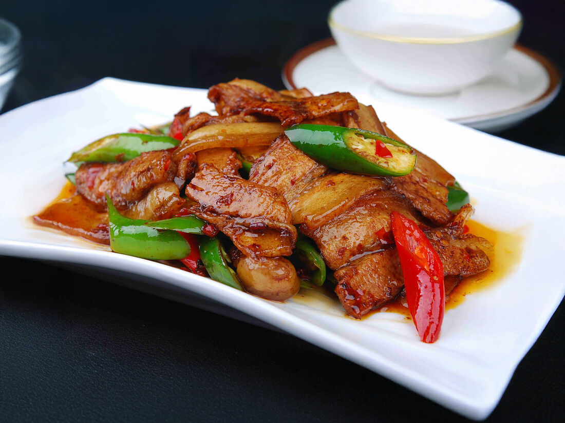 Жареная свинина с луком и острым перцем