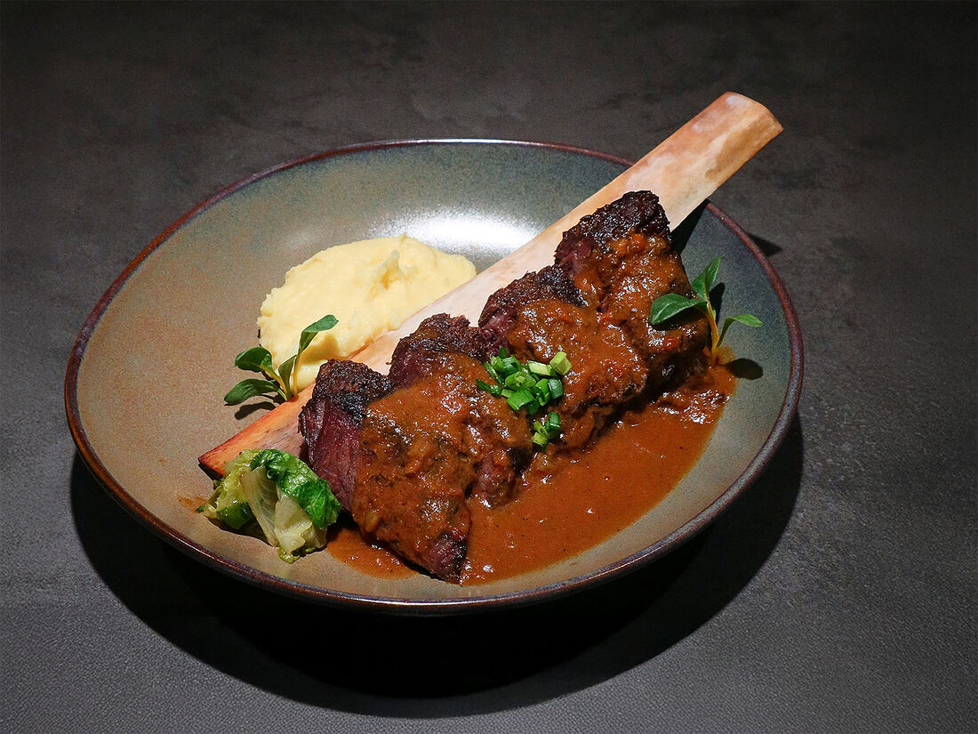 Томленая говядина, брискет и пастами с муссом из пармезана