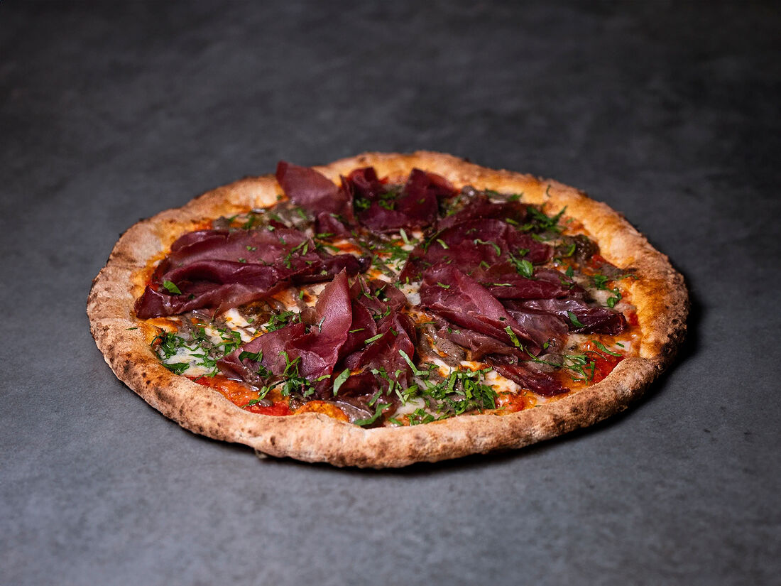 Пицца Fabrizio брезаола, белые грибы, горгонзола