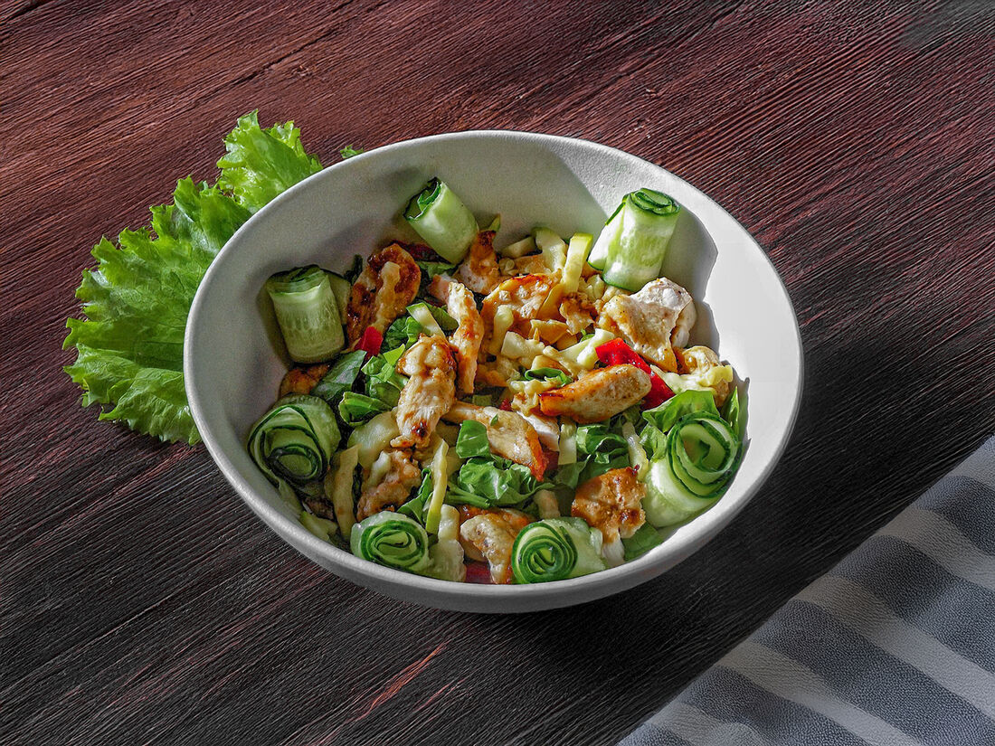 Теплый салат с курицей