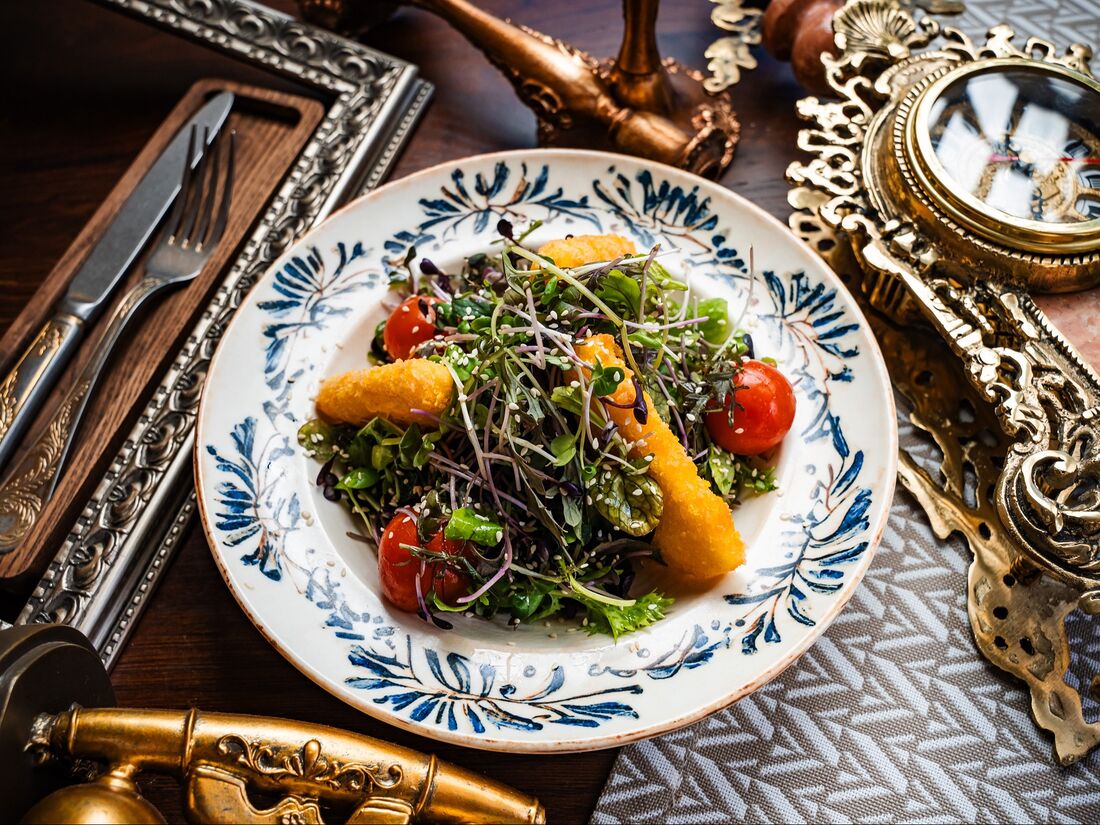 Салат с жареным сыром сулугуни