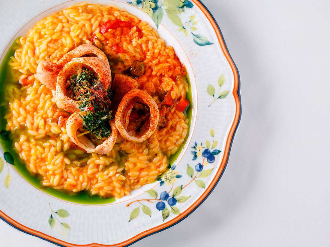 Кальмар с киноа и овощами