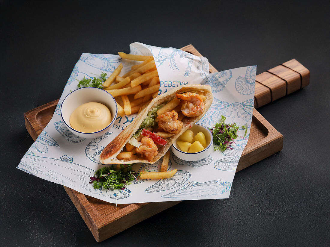 Пита с тигровыми креветками в соусе Райта