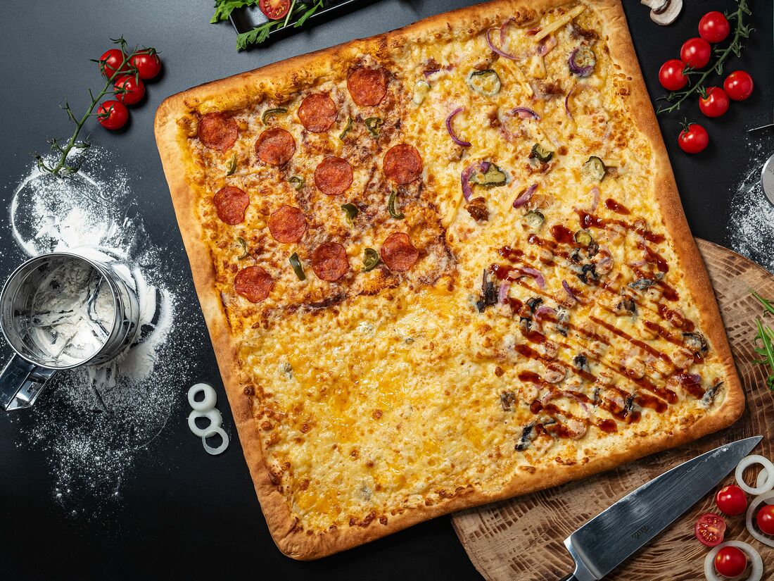 Пицца Забугорная 4 вкуса Квадро 45 см