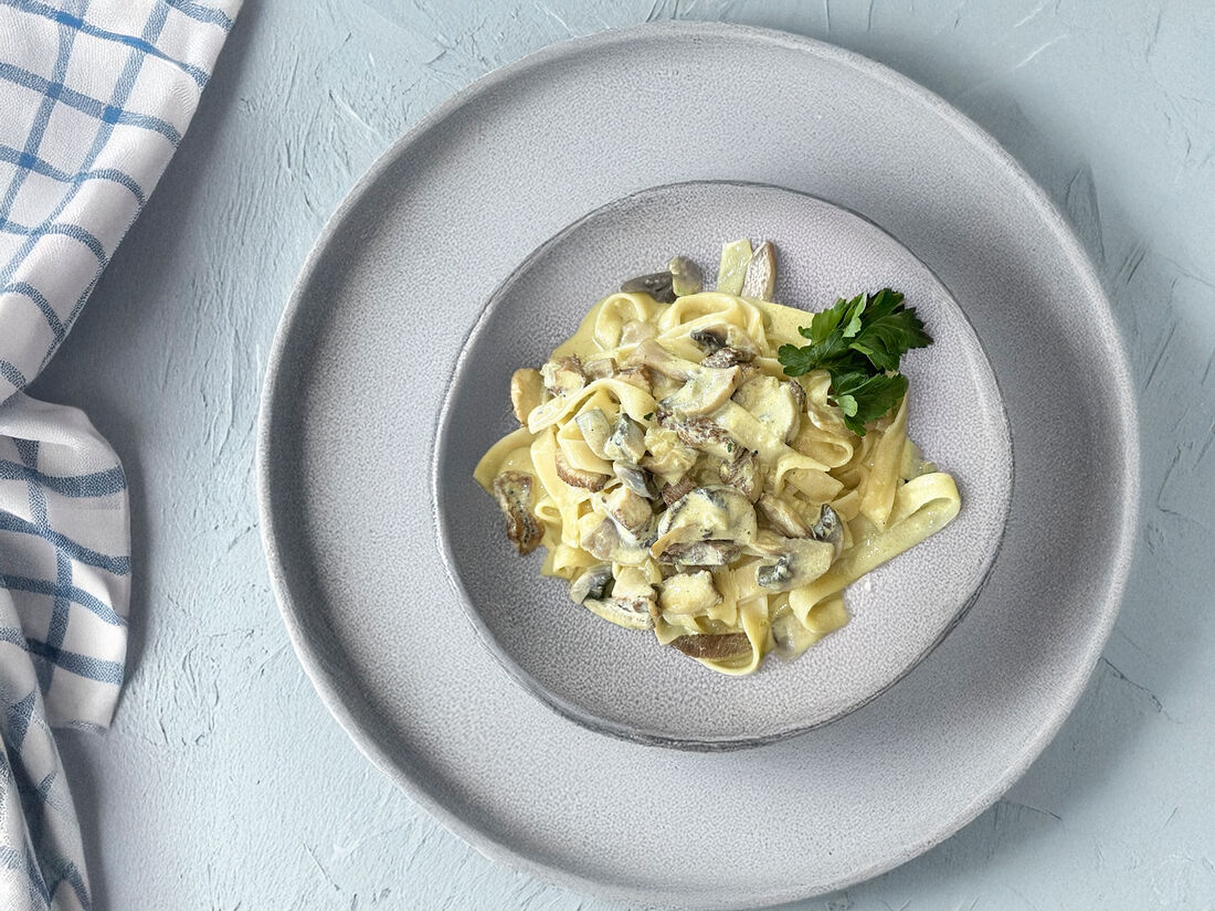 Паста с курицей и шампиньонами
