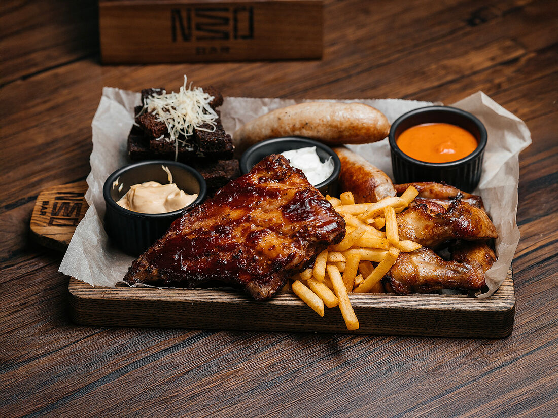 Свиные ребрышки гриль с хрустящими овощами и соусом Норшараб