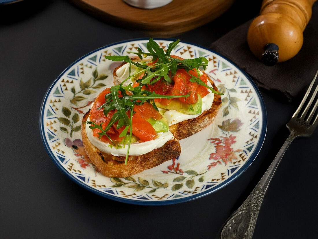 Брускетта с лососем и авокадо
